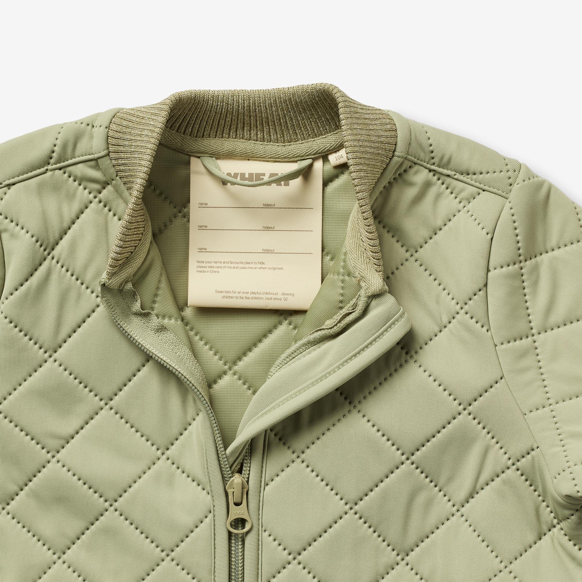 Wheat's popular thermo wear for children is a true everyday favourite, as the soft and lightweight material makes it comfortable to move and play in. The thermo jacket is produced in 100% recycled polyester and can be used as a cozy layer indoor and as practical transitional outerwear. It is not waterproof but is water repellent and is suitable for damp weather.